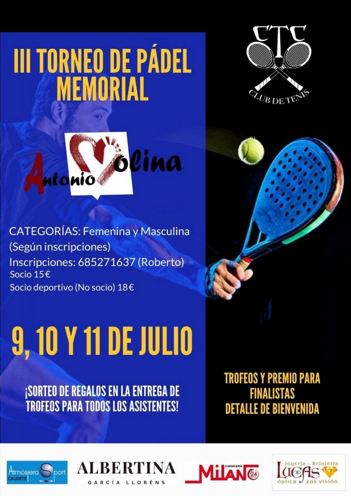 Desde hoy viernes, y hasta el próximo domingo, se va a disputar en el Club de Tenis Caudete el III Torneo de Pádel «Memorial Antonio Molina».
