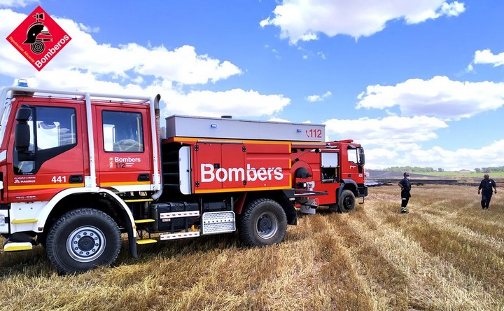 La intervención de los bomberos evitó la propagación del incendio, que podría haberse originado tras una avería mecánica en una máquina cosechadora.